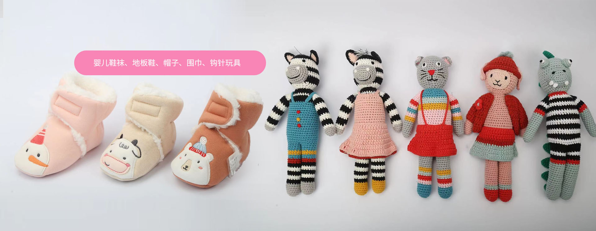 本公司主要生產:嬰兒鞋襪、地板鞋、帽子、圍巾、鉤針玩具等針織品、縫制品和手工制品。產品主要銷往美國、加拿大、歐洲、日本等國家和地區。本公司通過了BSCI,SLCP,Carter’s,KOHL’S等客戶的驗廠